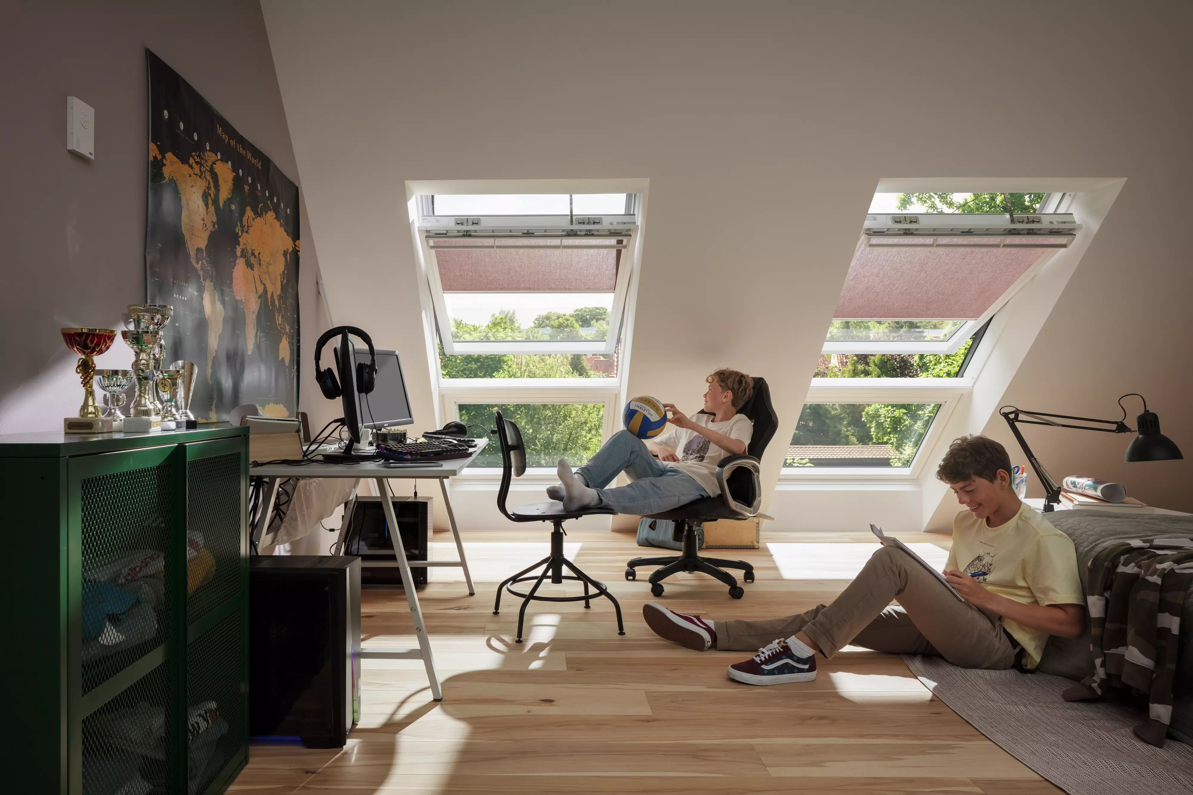Im VELUX Produktportfolio finden Sie deshalb neben einer großen Auswahl von Dachfenstern auch die passenden Verdunkelungs- und Sichtschutzrollos.